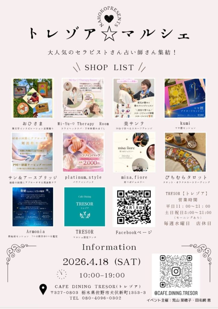 今回で2回目のトレゾアマルシェ出店になるので、とても楽しみにしています。